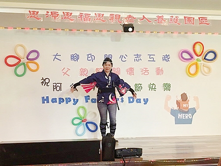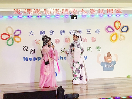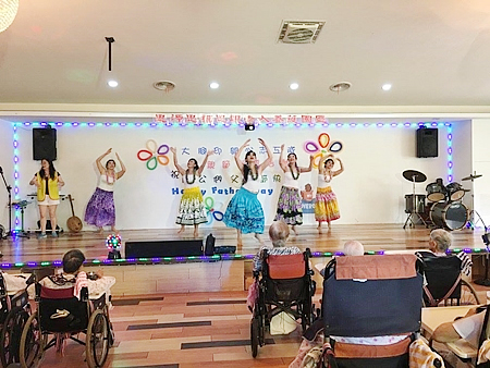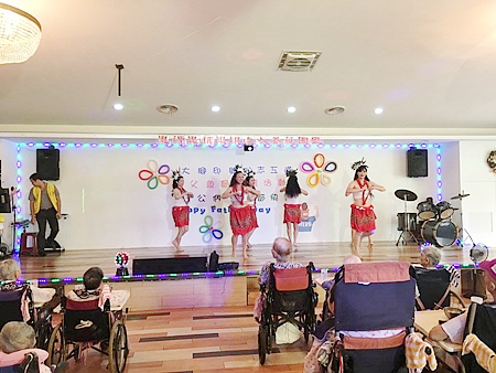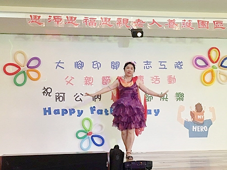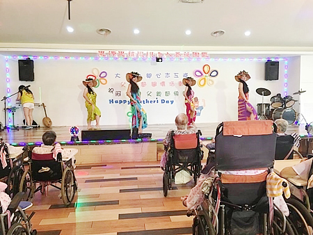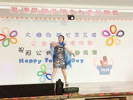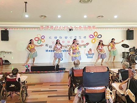 服務介紹 活動剪影 節慶活動 2017/08/05 大腳印開心志工隊父親節關懷活動 感謝院長與執行長的用心準備了一個大蛋糕為長輩們歡慶父親節,也感謝大腳印開心志工隊與炫舞伶舞團 MOANA NUI海洋舞蹈藝術 心好公司與歌仔戲老師,一行共24位志工來到園區為長輩們表演,有動感優美的大溪地與夏威夷舞蹈,有淑華姐的精彩歌舞秀,還有歌仔戲老師帶來的歌中劇,讓長輩們有個歡樂的午後. 返回