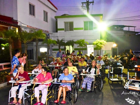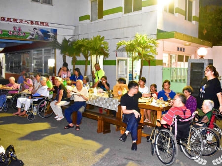 服務介紹 活動剪影 節慶活動 2019/09/07 月圓人團圓 一年一度中秋盛會即將到來,得天獨厚的院區寶地是每每舉辦戶外活動的最佳環境,今年也不例外的賞月舞蹈唱歌,烤肉BBQ,月餅柚子,比薩現烤專車,熱鬧氣氛濃厚,長輩樂得合不攏嘴,家屬的熱情參與,一起登場表演舞蹈,長輩也矛起勁登場共舞,工作人員熱情奔放彩衣娛親,我們真是幸福的一大家子,還有什麼比快樂更真實,看到長輩能吃能喝能玩,能生活在充滿歡樂之所,真是好福氣好幸福啊,在此也預祝大家中秋佳節快樂,AudreyWang文,拍攝於思源,請勿轉載分享,長輩有肖像權 返回