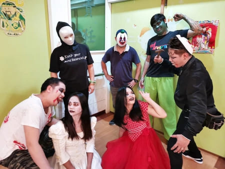 服務介紹 活動剪影 節慶活動 2019/10/31 萬聖節瘋趴 萬聖瘋趴群模亂舞,阿公阿嬤初體驗,全院園區 放任瘋狂,長輩們掩藏不住,內心年輕狂熱傾洩而出,即便彩妝滿臉仍然掩藏不住興奮地喜悅笑容,長輩及所有的工作夥伴們拼了 拼了 拼了,盡情地釋放內心的幸福,結束了 依然捨不得卸妝只為了將此美好時光記憶至永遠回憶一生中的唯一,在此萬聖節,福所有人,永遠平安健康喜悅幸福,AudreyWang文,拍攝於思源,長輩有肖像權,請勿轉載分享 返回