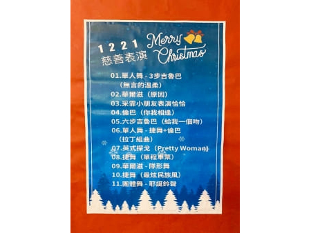 服務介紹 活動剪影 節慶活動 2019/12/21 興仁社交舞班 聖誕愛心關懷活動由團長陳貴美領團在寒冬中帶來火火火的舞蹈演出,真正地結合社區,做到最好地「社區機構一家親」,令人感動的是~坐輪椅的演出者,令人感動的是~許多高齡的長者演出,令人感動的是~愛與美的笑容帶給長輩們盛裝的打扮與精湛的舞藝,在在顯示對此次的全然付出,園區的長輩們提早過了一個歡樂的聖誕派對,個個開心不已笑得合不攏嘴,再次代所有的長輩致上十二萬分的感謝,祈願感恩月,大家平安喜樂,AudreyWang 文,拍攝於思源,長輩們有肖像權,請勿轉載分享 返回