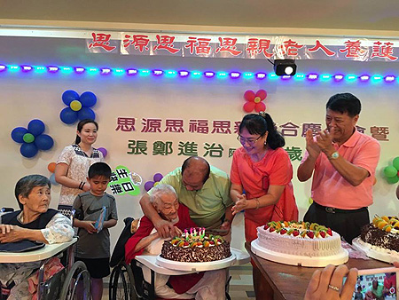 服務介紹 活動剪影 日常活動 2016/08/28 思源思福思親聯合慶生會暨張鄭進治阿嬤百歲生日 感謝執行長的用心安排,與進治阿嬤家屬的貼心,為八月生日的長輩和百歲生日的進治阿嬤,舉辦了這場溫馨的慶生會,祝福所有的長輩生日快樂身體健康. 返回