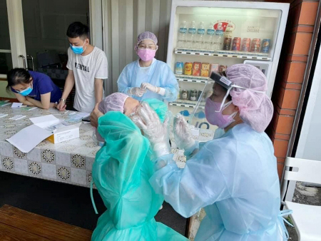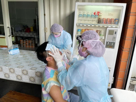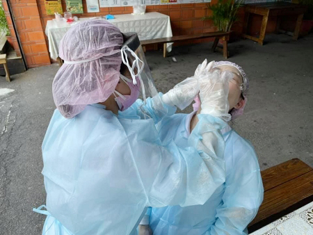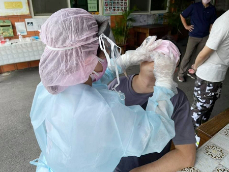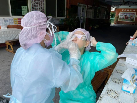 進行前,周邊先消毒;進行後,再次收拾感控器物與環境消毒。